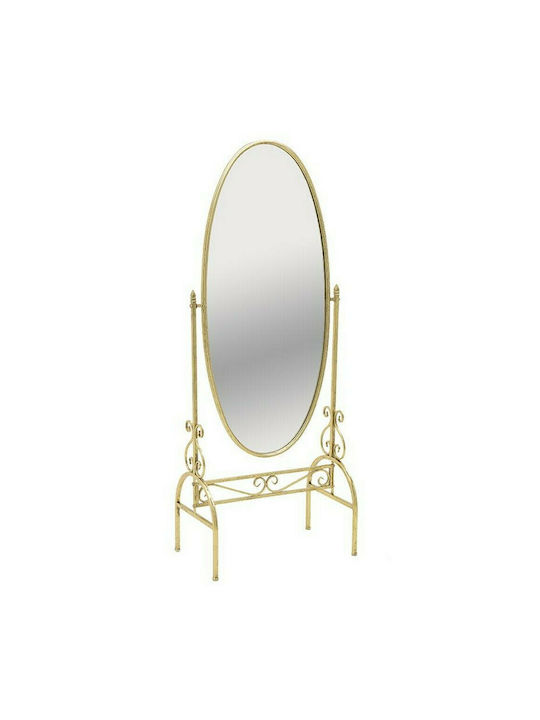 οβάλ καθρέπτης δαπέδου με μεταλλικό πλαίσιο σε χρυσό χρώμα 65χ38χ158